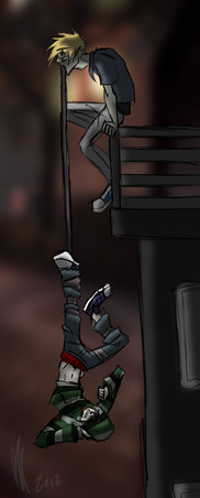 And then he gets stuck there like a cat in a tree and can't go down 'cos he's afraid of heights XDD Sounds stupid, I know