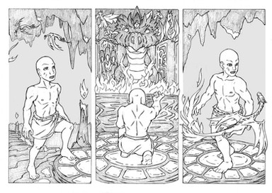 Soon, the heat grew to eclipse the pain, the Aspirant felt as if his soul itself was set ablaze. The fire burned away his doubts and fears, purging away any weakness of his former self. His bones felt like molten steel, and his heart an erupting volcano, spewing forth hot, draconic blood through his veins. His skin burns and cracks, both from the heat and his enlarging form.