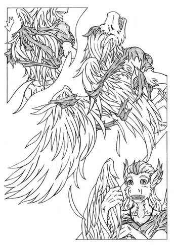 "The carapaces crackled and popped, surprising the Aspirant as they began to flow into curves. Over his (her?) wide shoulders, twin mounds began to form over the expanse, growing into lush orbs, their weight pulling her frame forward. The Aspirant gasped in wonder, but it came out as a sibilant hiss as her jaw and tongue became reptilian.