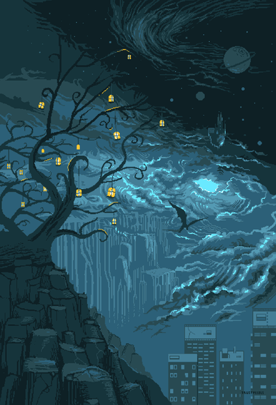#pixel #celestial #clouds #cosmic #landscape #moonlight #sky #art