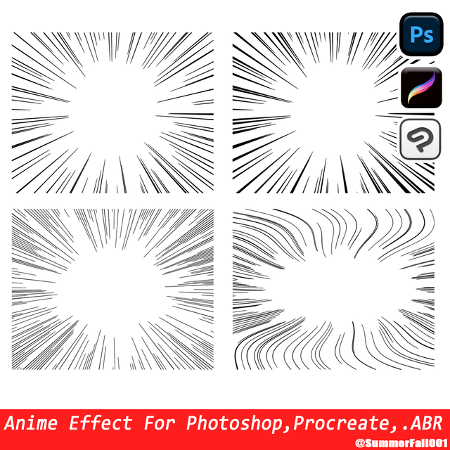 The package has a total of 30 speed-lines they are organized by different densities of lines. The folder titled NUM001 have the least dense set, NUM010 have the densest of he package.
