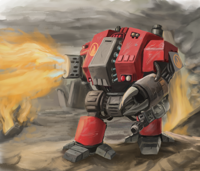 Pre-Heresy Thousand Sons Contemptor Dreadnought, Mortis pattern if I remember correctly, wielding two Kheres Assault Cannons.Just a fairly quick painting to test out the modifications I want to do to my Contemptor model to see how they look, before I start actually putting the thing together. Better to make mistakes in a pic than on the actual model, heh.
