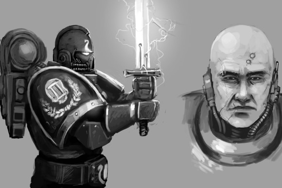 Brother-Captain Stern of the Grey Knights, Warhammer 40,000. He sees you there through that viewscreen and Does Not Approve.A little scene from a 40K story I've been working on, based on some of the battles my friends and I have had.