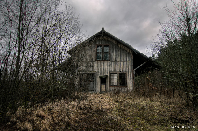 This little blue abandoned house is not far from my house. When I was little, some kids (I know most of them) went and broke the windows, but they got caught. Many people walk past that house with their dogs etc. and I was also pretty scared to be on the yard, maybe someone would think that I was also there to break something ^^ But I just took some photos.For years I have also walked past that house, so it was kinda weird, but cool to be on the yard for the first time. The road goes there behind the house, and there's also some spruces between the house and the road. Nobody has lived there for as long as I have known the place.