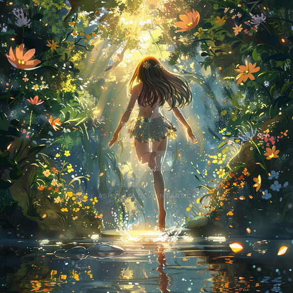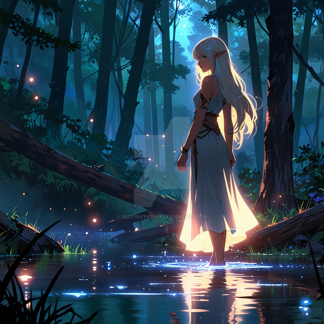 Oups! As you where making your way back to town you seem to have accidentally stumble upon an elf bathing, what a blunder, she hasn't noticed you but you noticed she's actually walking on the stream, could she be practicing a spell?, either way it wouldn't be polite to ask.-