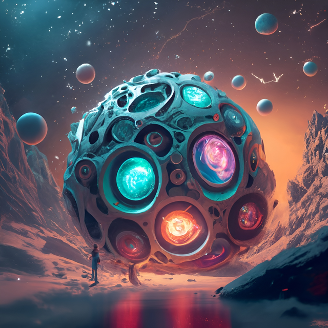 After the iceforst, our friend the Astronaut now observes odd realitys warp in spheres within the skies, maybe one would open to a dimension to friends long lost and forgotten-