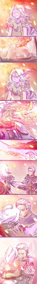 Ha, stars.. <3 I keep meaning to comment on your arts here but never get the chance.. >///< I'm really sorry. But I wanted to comment on this one a lot cause it feels.. very important. From what you tell me, Perry's species doesn't age as fast so .. it must have been hard on her, to see Khadgar grown and .. unsure if he'd still have those emotions from years ago. But she still had hope, right ? And that's what matters, and that she had the courage to approach him. And Khadgar's reaction is.. breathless, I'm sure he couldn't believe his eyes when he saw her, and I'm sure he felt the same - unsure if she'd have the same feelings, too. But you can see here that the hope they had in each other never wavered. And that's beautiful. I really love the expressions here, the soft purples and blues, it really brings the .. comfort and gentle air to the moment and.. somehow, the expressions in their eyes.. I don't know. It's so strong and you drew it so well. You don't need to see any parts of the face to see what they're feeling, just the eyes. And that's important.