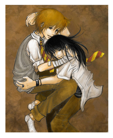 Resting after... whatever they worked onI'm a Slytherin, he'd be a Ravenclaw (I borrowed of of his shirt~ ). I'm not very good to concentrate so he'd help me now and then with homeworks, I guess.
