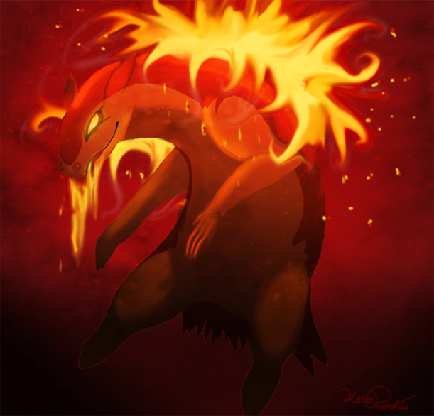 i'd like to say this is my typhlosion, but this guy doesn't seem to have the jolly personality my NightFire has ):