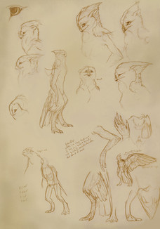 ~naturally hunched posture and tail to balance out the weight of the wings amd extra muscles