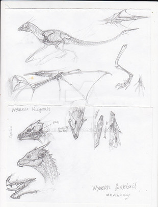 I would definitely look into pterosaurs for reference, they are the closes thing to vwyverns we know about, but you can alter it to your needs and desire of course! or small theropod dinosaurs!