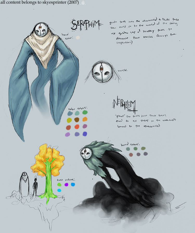 a rough seraphim and nephilim reference. hopefully my handwriting is legible. i'll probably create more indepth references later, but this was more for me keeping my colors right. blahblahsdljfkskyesprinter 2007