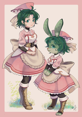 Praline is a friendly, energetic girl that runs Mana's tavern, The Harvester's Rest. She is Marmite's younger sister and harbors a very secret crush towards Cervelat, whom she often admonishes. Despite having her establishment regarded as a tavern, she allows Explorers of all ages to enter - but only serves alcoholic drinks to those that are of age, mind you!