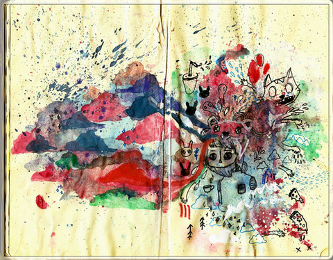 clever work, i love the contour line drawings and thick black lines setting up the foundation... this is reallly just gorgeous on seccond glance; so full of narration and the loose organization of everything works like a charm to keep the eye flowing around the piece... never really getting stuck anywhere. great illustration.