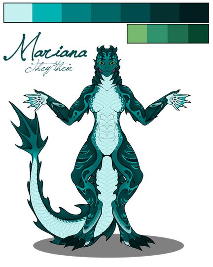 (Also, her scar and bioluminescent scales are different colors. Her scars are the second color in the pallet and her bio scales are the third)