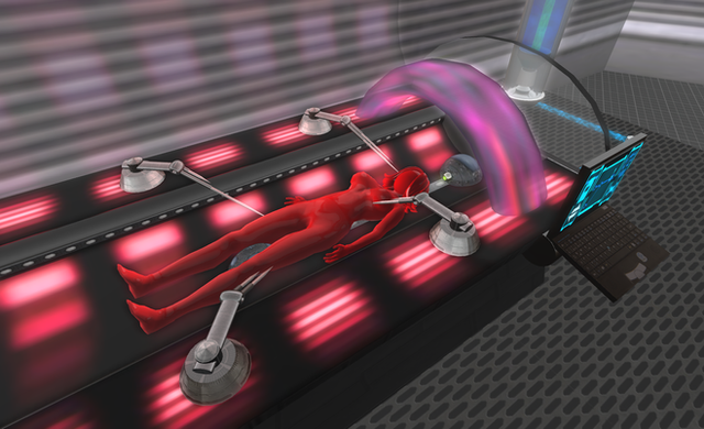 Whenever new dollies enter Latexia they must first go through the customization shop. This is where accessories are added, minds are wiped and just general preparation for their new lives as latex dolls & bots occurs.Here we see a brand new doll about to be worked on.