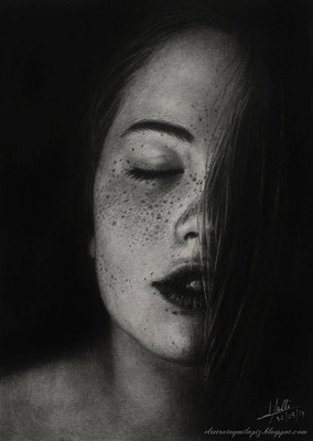 #artwork #beautiful #calm #charcoal #contrast #dark #darkness #drawing #face #female #filmnoir #girl #gothic #haunting #intense #light #lighting #noir #paper #people #person #portrait #pretty #realism #serious #shadows #sleep #woman #art #blackandwhite