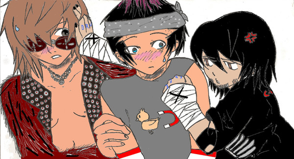 Fall out boy's go to bed! Patrick has bunny plushie and they're cute together! ^^Pete has 'sexy' pajama.