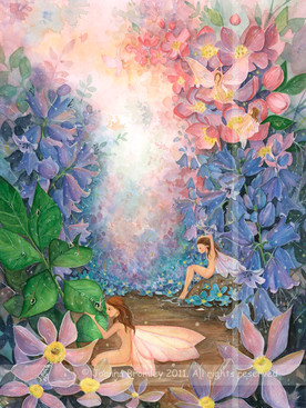 the dream study: swirly lollipop trees. flying fish (fish with bird wings). a flying girl - wearing a tutu and ballet slippers! and a cape with stars hanging on strings.
