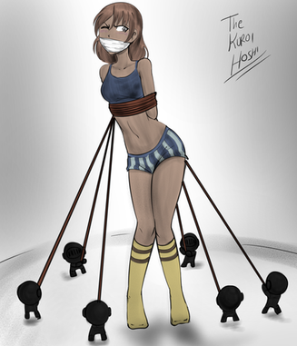 Lun groaned loudly into the large wade of cloth in her mouth, she watched the jerk of the thief push the button raising the chain that was was attached too, once he was happy with how high she was in the air. He turned scooping up Cvet who had been squirming on the ground the entire time he had been affixing Lun to her new permanent position, Now with the Asian cop securely in the air he threw Cvet over his shoulder and without a word began to leave with the princess, Lun groaned and swayed as she struggled, arching from side to side. Cvet kicked at her hog tie watching her body guard get further and further away. Eventually Cvet was loaded into a trunk and Lun was left to freeze in the cold storage. Would anyone save them!?Cvet belongs to