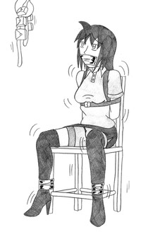 After what felt like hours of being tugged and dragged through the streets, which was only made longer by CJ constantly pulling away from her little captors. She found herself lead towards a limo, after several mintues of the tiny beasts tugging, pushing, and eventually lifting her and tossing her inside. The door was closed and they sped off, while in the limo the little letches decided to stripe CJ of her socks and tank top. Untying her arms which caused her to fight but be held down they managed to force her into a nice dress before her wrists where tied again. She gave muffled screams at the driver the entire time but he ignored her. Soon they arrived at some mansion where she was carried out by the tiny knights, the little beasts where strong she had to give them that. Once inside the mansion several servants waved to her, and despite her muffled protests the servants actually helped the little demons! They braided her hair, put make up on her, and picked out clothes. CJ was eventually placed in a chair with a labal that said 'Larry.' Screaming and fighting the whole way must have pissed off the little armored beasts as yards of rope where lashed around her, and too Larry as well securing her in place. From there they changed her gag into a dainty cloth tying it tight behind her head. One little knight pushed up her breasts, before placing a pin at the center of the mounds from there he seemed to ounge and admire them, that one she would make sure to stomp extra hard when she got free. They where placing the final touches on her as well as enjoying the view it seemed, she noticed and empty seat across the table, which had a fine tea set on it. Was she abducted to have tea with someone?!--------------------------------