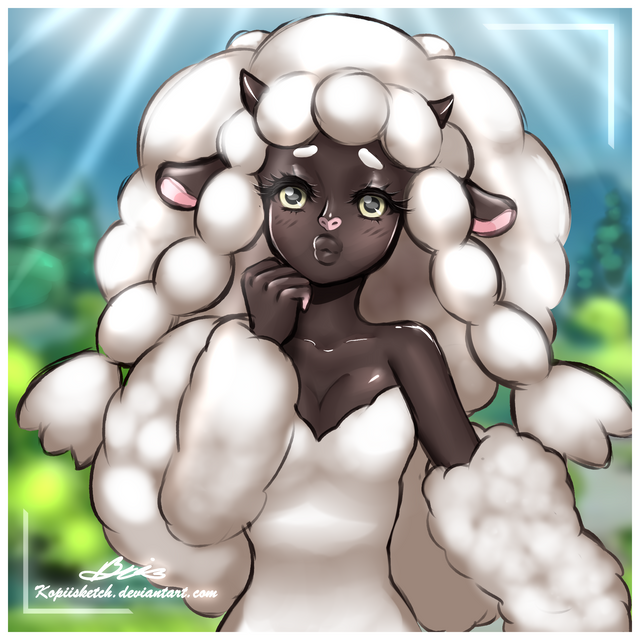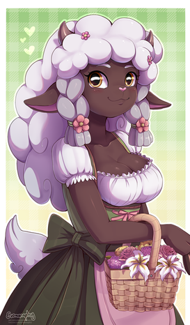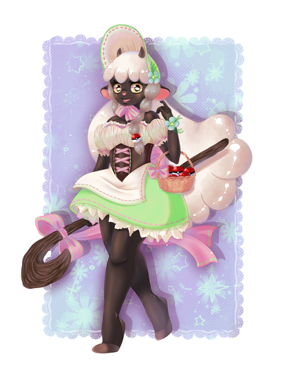 My final new print I worked on, a humanized Wooloo...with some woolly Wooloos! I based her clothing on country lolita!