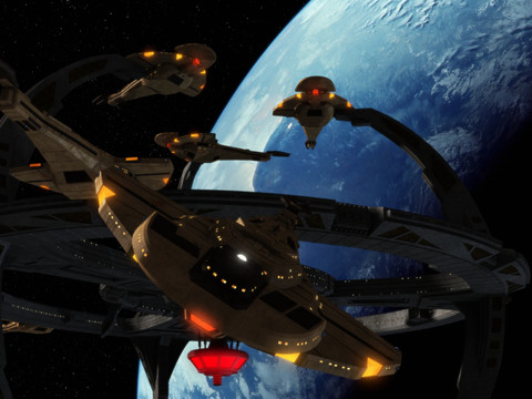 We're getting creative. The ships closer to the Gate Way station are Knox-class heavy frigates. Not sure what the ones are which are approaching for resupply and refueling.