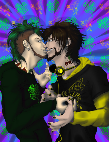 Entry for 's contest... Not sure what else to say except that I absolutely loved drawin' these two, and I hope I didn't screw anything up too bad. Chars Liam (left) and Vaughn (right) belong to and respectively.Related content