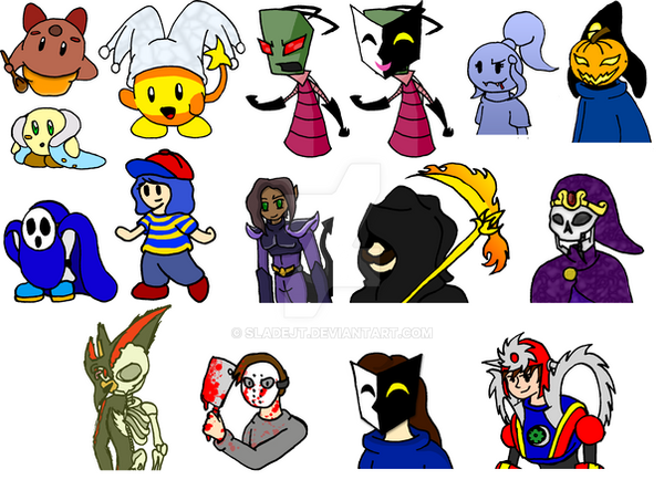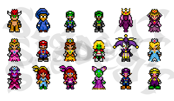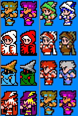 I'm having a lot of fun making sprites and seeing how many characters I can make with my own bases. This set in particular is in preparation for a PSP adventure/RPG game where you can make your own characters. You just know that people will do this sort of thing. It's inevitable.Characters are as follows.