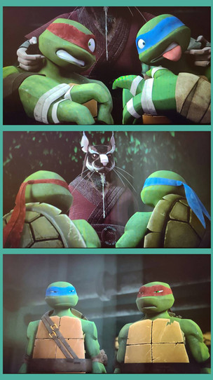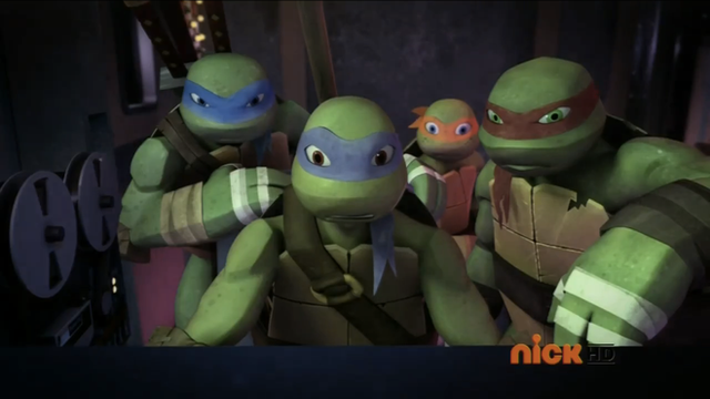 Leo and Raph argue, Mikey and Donnie just stand by making sure they don't kill each other. Same old song and dance...TMNT 2012, season 1 episode 15: Alien Agenda