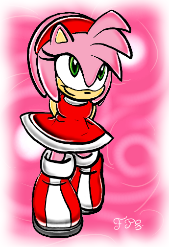 Spiffy Amy Rose work. She looks poised and ready to ask out Sonic, only to be turned down. She'll then flirt with Tails to make Sonic jealous. She'll play with Mr. Prower's heart, only to have him dish out rupees for a 5 ounce Chaos Emerald ring. She'll say "thanks" and then give it to Sonic, only Sonic will then give that same ring to Sally, and she'll run off with a tattooed pirate to live happily ever after in Spain.
