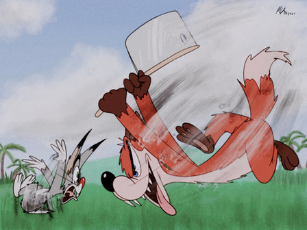 Looks like that rabbit didn't run run run fast enough. XD This is just brilliant.Poor little rabbit. Good work on it's expression. And the sky really reflects the mood and what's happening in the image.