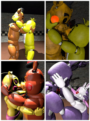 1st new batch of Bongle images from this "One Trick Pony" with my restored computer, Bonnie and Mangle kicking it up and getting a bit(e) more romantic.*****Remember kids, don't nibble on your partners neck without consent.****