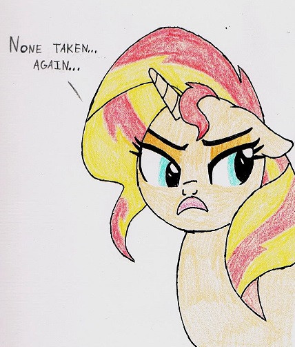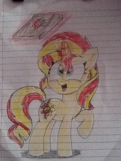She must be reading Twilight's latest entry.When in doubt, draw some Sunset Shimmer. At least that's my philosophy.