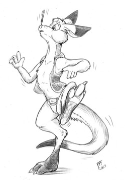 I have a kangaroo superhero I drew for a friend, but she's not on DA.