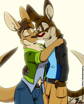 Awww, is he a kangaroo? He is very cute, and this will make an excellent cover for a DVD or a poster. I love it when the cover is actually posed rather than just a scene from the movie, so I'm particularly fond of this. Great job! >'.'< miau