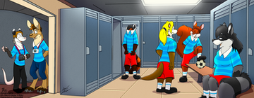 I really like the shading in this.Β There's really the sense of them being in a small, sealed metal tube.Β Great work!