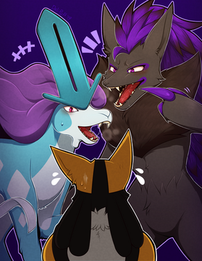 #pokemon #lucario #anthro #kemono #mienshao #sylveon