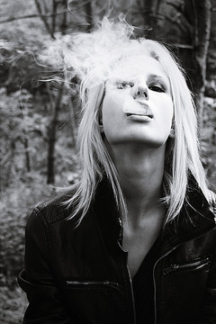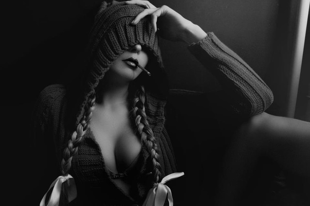 Calls back to vintage monochrome photography. The smoke is a beautiful touch, it feels calm, but anxious, and your model is gorgeous.