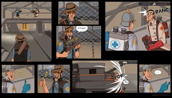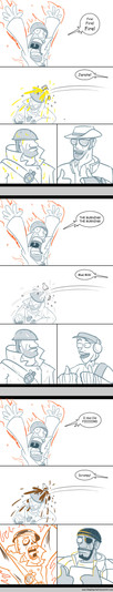 Love this comic though. RED Spy had it coming, BLU Sniper wasn't too happy to die in Meet the Spy.