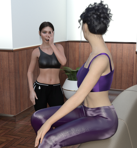 Monika couldn't help but laugh at the sight before her. Heidi, clad only in a golden spandex bikini, was passed out in a heap on the sofa. Her derriere stuck up in the air in an undignified pose. One arm dangled off the side. Beneath her hand a flask and toppled shot glass raised an obvious flag at what had caused her comatosed condition. Monika leaned over the sofa. Resting her knee on the armrest, her skintight pink latex pants rubbed against Heidi's barefoot. "Girl," she said as she directed a finger at the vulnerability of the seductively raised rear end before her, "it's a good thing we're not from West Virginia 'cos I think we'd be kissing cousins." She licked her lips. "Well, at least I would." As if on cue, Heidi exhaled a long moan that suggested her sleeping fantasies might be just as an impure as her cousin's thoughts.* * *