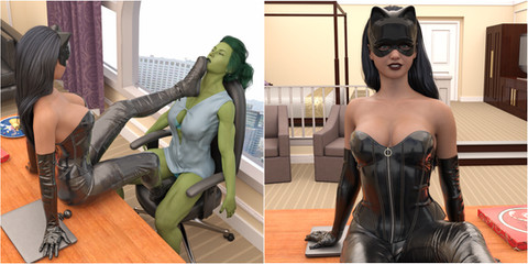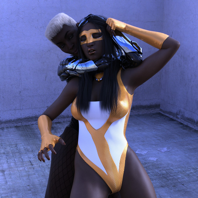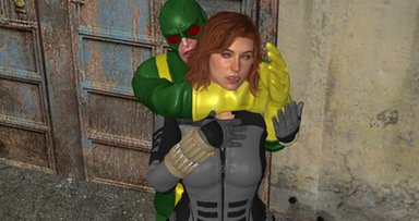 Black Scorpion helplessly felt herself slipping into a deep slumber. Her knees buckled as all her limbs started to go limp. The whites of her eyes rolled back into her head while her eyelids fluttered, quickly at first and then slower and slower.Her assailant, Sirena, continued to press the chloroform soaked rag over her mouth and nose with one hand. Her other hand firmly gripped one side of the molded plate that partially protected her chest and abdomen. "I can't wait to feel what's underneath," she cooed in Black Scorpion's ear. "I really didn't think I'd get the drop on you," she admitted. "Or maybe you really wanted to be caught."