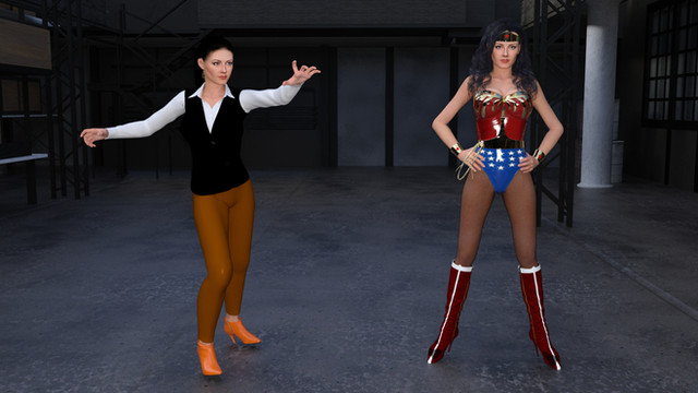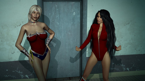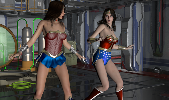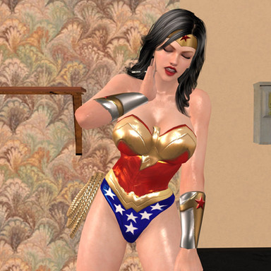 Shocktress cooed to the dazed Amazon, "One last shock put you to sleep. Wonder Woman, you're mine to keep." With that she blew a kiss at Wonder Woman. Sparks of high voltage electrical energy cackled off her fingertips and laced around the Amazon's face. Shocktress smiled in esctasy. She let the energy dissipate. Wonder Woman stood there, her head drooping, her limbs shaking tightly. A theatrical flick from Shocktress' fingertips, and Wonder Woman staggered backwards in wide, drunken steps. With each step more precariously balanced than the last, it took only a few meters before Wonder Woman took a pratfall to the ground, her head dropping down between her knees.Related content