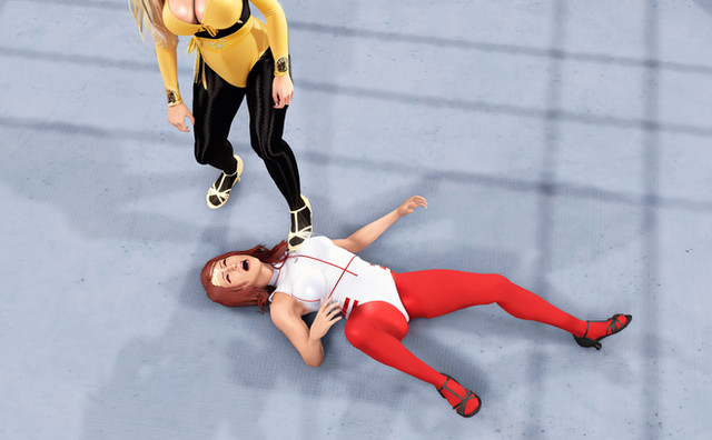 The spandex clad woman suddenly dropped to her knees. As she did her fist swooped down in a blur against the side of Natsumi's head. The young heroine collapsed onto her side. Her assailant then rose to a crouching position, her fists ready for a second strike. Her precautions were unnecessary. Natsumi didn't rise. She remained motionless save for the rise and fall of her chest.* * *
