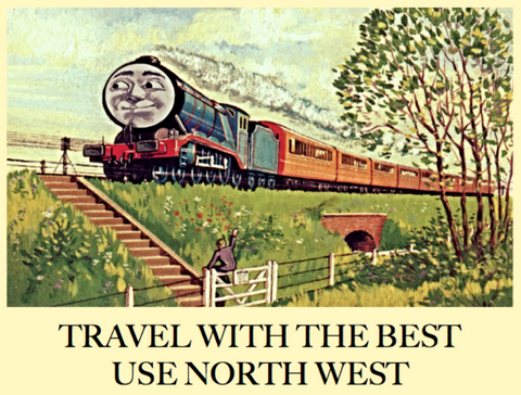 Even if the message is a bit cold for a railway network advertisement slogan without the subtext of a valued steam locomotive roster, Engines 1-11, Barry the rescued lightweight mogul, and others up to interpretation. It's a nice photoshop dude. Love to have a link of the source material poster please. Very LNER looking