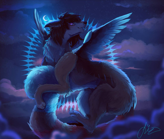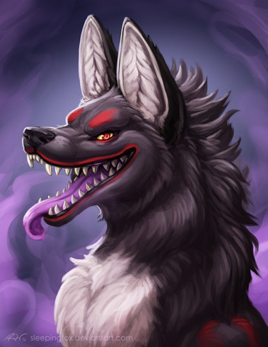 Long overdue self indulgent painting of Anya! Her spiky fur ridge is present in all iterations, but I think her fur gets progressively fluffier each time and now she sports a pseudo mane haha. As a dreameater, she normally resides in a limbo world and is preceded by purple fog when appearing in the mortal realm...