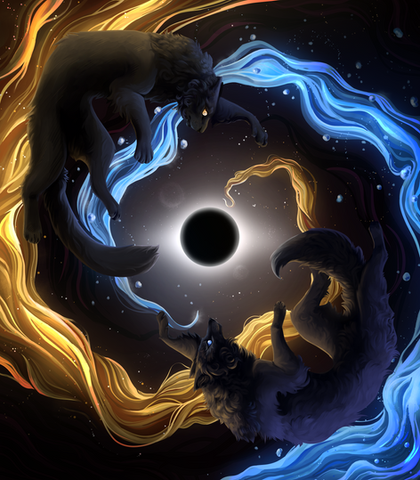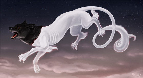 #animal #bramble #canine #clouds #dog #fantasy #furry #lightning #magic #omen #painting #premonition #sky #spirit #sun #thorns #wolf #wolves