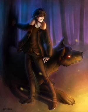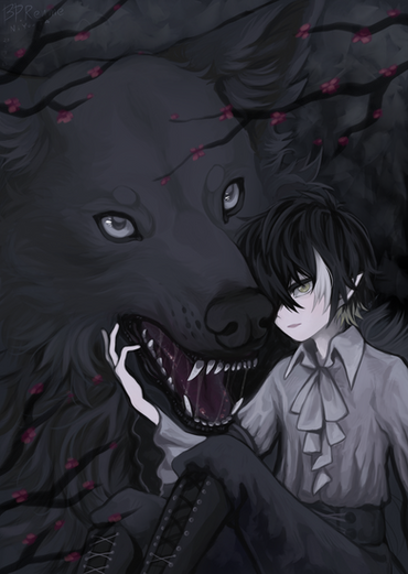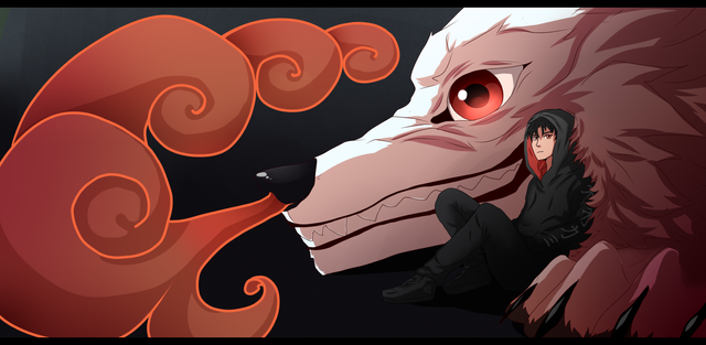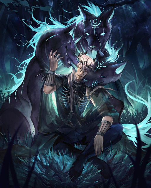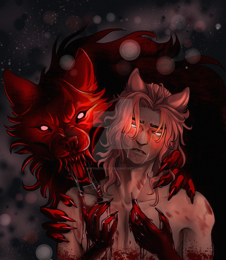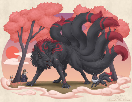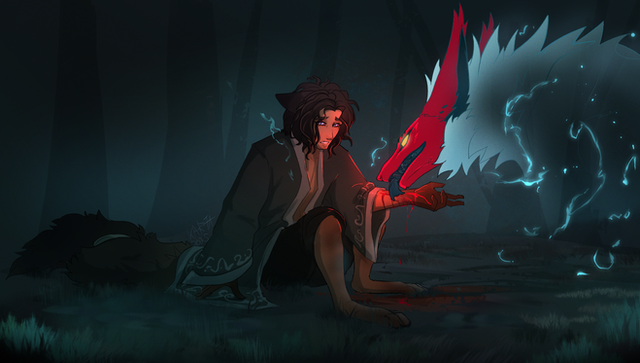 #animal #cliff #creature #fantasy #fox #human #kitsune #male #monster #oc #original #painting #ravine #wolf #originalcharacter