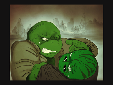 I just realized something, the eye color of the turtles in this movie matches their eye color in the 2012 series, Raph's eyes are green, Mikey's eyes are baby blue, and Leo's eyes are dark blue, just like in the TV show (which I LOVE by the way ^^) Looks like the makers of this movie like to be accurate, I would tell you what color Donnie's eyes are but I can't really describe it, plus in the movie, I can't really see his eyes due to his glasses (but that ain't Don's fault, he just doesn't have good eyesight ^-^) Either way, their eyes are very nice to look atΒ Β