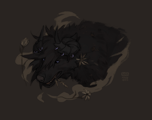 #bramble #furry #furryart #fursona #plants #roots #skullface #spikes #wither #batskull #skullcreature #witheringplants #floralportrait #batskullsona #skullfacedcreature